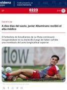 El futbolista de Estudiantes de La Plata continuará recuperándose en su domicilio luego de haber sufrido una trombosis del seno longitudinal superior.
