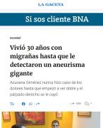 Vivió 30 años con migrañas hasta que le detectaron un aneurisma gigante
