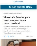 La historia de Fernando Jácome Jiménez se conoció en el marco del 44° Congreso Argentino de Neurocirugía, que se realizó en Tucumán la semana pasada