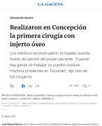Realizaron en Concepción la primera cirugía con injerto óseo